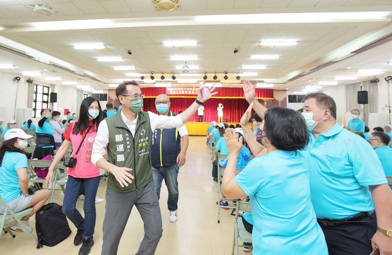 ▲桃園告市長鄭文燦、市長參選人鄭運鵬今天出席市議員參選人李柏瑟青春陽光協會後援會成立大會,向支持者揮手致意。(圖/鄭運鵬競辦提供)