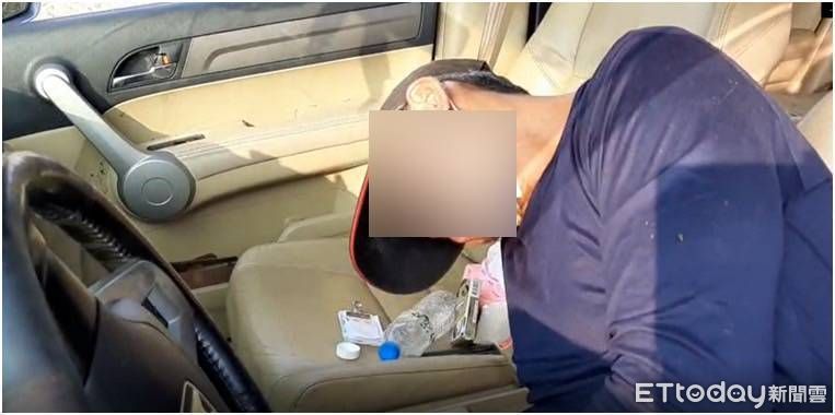 ▲48歲許姓駕駛剛施用完毒品而昏睡,手中還拿著針筒,台南市學甲警分局督察組長王啟仁發現通報警力支援查獲。(圖/記者林悅翻攝,下同)