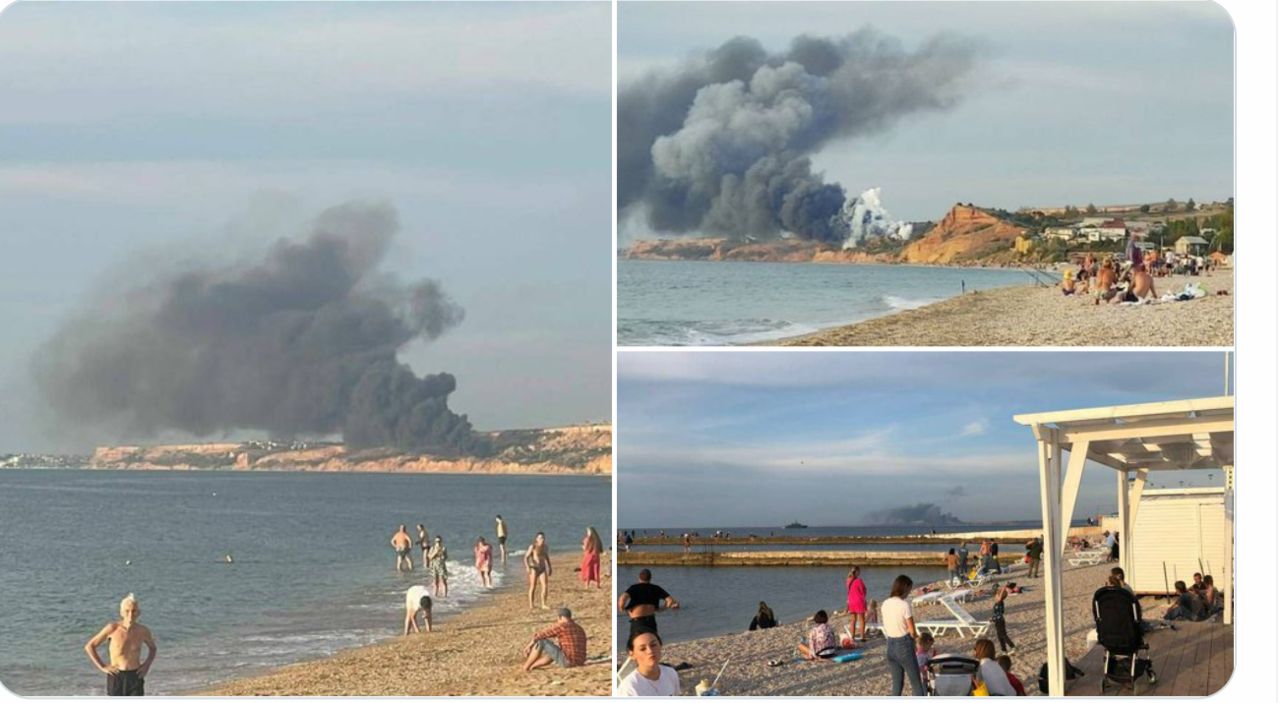 俄軍1日才承認從烏東重鎮利曼(Lyman)撤退,同一天在克里米亞(Crimea)的俄軍空軍基地,也發生大爆炸,畫面全被附近海灘上遊客拍下。不過官方聲稱,爆炸的原因是因為飛機滑出跑道。