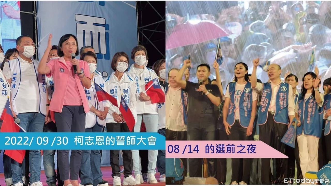 李眉蓁指出,柯志恩前晚造勢晚會,和她兩年前臨時代表國民黨越級打怪的選前之夜,一樣的地點,一樣的舞臺大小。不一樣的是前晚天氣晴朗,她的選前之夜卻下著大雨,「不一樣的是,那場是結束,這場是開始。」她特別貼出韓國瑜冒雨站臺的照片,回憶道「那晚的雨真的下的很大,我哭得有點小慘。當你站在舞臺上看到支持者還站在雨中,當你想到自己選得那麼爛,大家還沒有拋棄你,眼淚真的止不住。」並且說那場補選要說對不起的地方實在太多,「沒有幫國民黨維繫住士氣,是我最大的遺憾。」