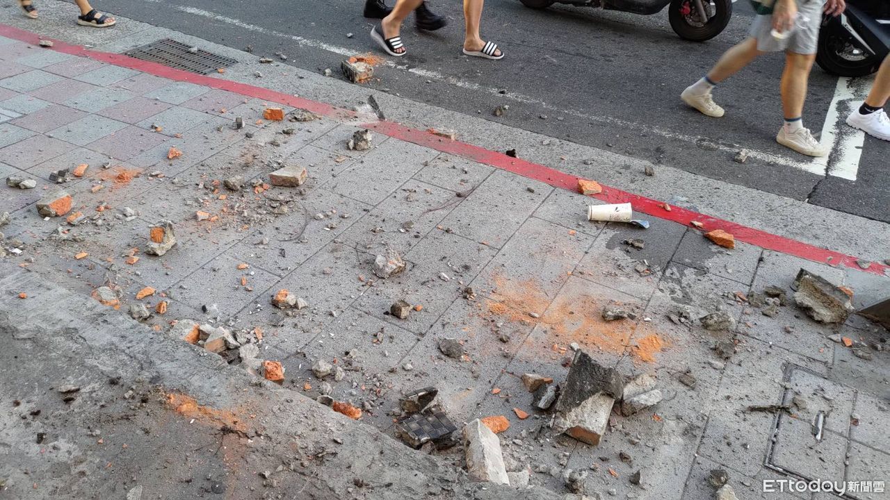 ▼水泥磚突然脫落,砸到了34歲林姓女子,也嚇壞了路人。(圖/記者張君豪翻攝)