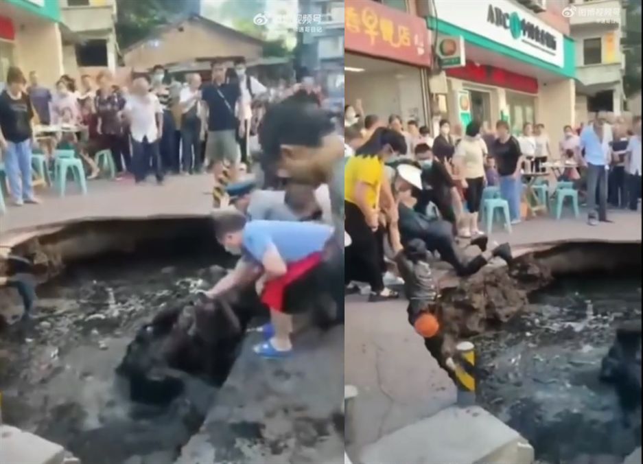 網友看後留言稱,「向施救的人致敬,英雄」、「還有這麼多人站在旁邊,不怕周邊也塌了掉進去?」、「有味道的新聞」。