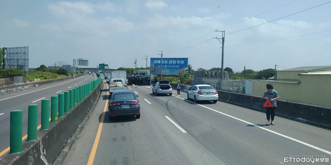 台86線3.3公里處4日中午發生一起嚴重車禍!現場疑似轎車與小貨車發生追撞事故,貨車當場側翻占據外線車道,目前僅剩單線能通行。警消獲報後立刻出動救援,至於詳細事故原因仍待進一步調查釐清。