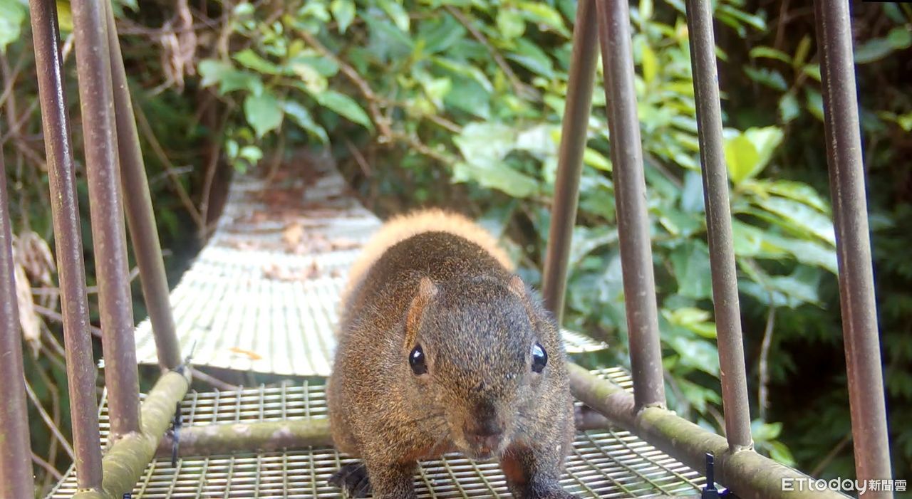 ▲松鼠悠閒漫步通過空中廊道。(圖/新北市農業局提供,下同)