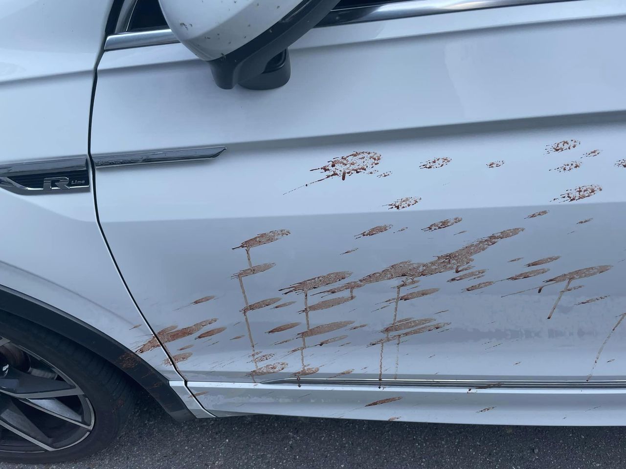 一般民眾對檳榔大多有負面印象,像是部分嚼檳榔者會亂吐檳榔汁。一名女網友在臉書抱怨,她日前開車出門處理事情,沒想到處理完要回家時,發現車子被人吐了一大片「檳榔汁」,讓她超級崩潰。