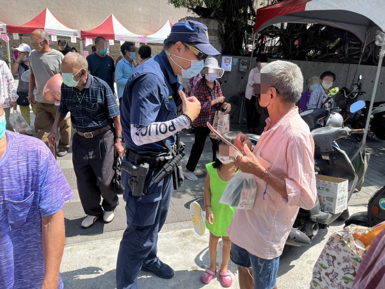 攀談過程中,眼尖的女童突然開口「阿公在那裡!」,人群中出現一名老翁匆忙找尋的身影,員警立即趨前確認無誤後,終於祖孫重逢,68歲的吳姓阿公見孫女平安無事,和員警都鬆了一口氣。