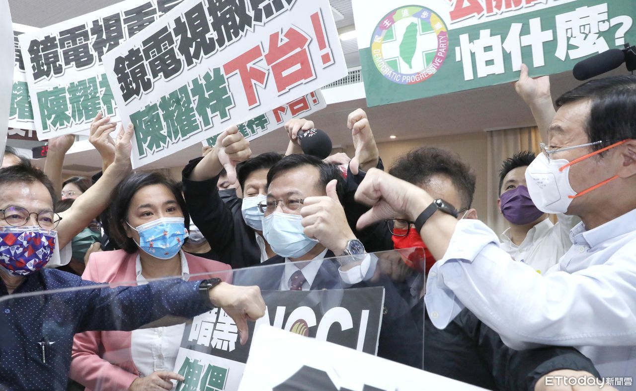 ▲NCC主委陳耀祥5日在立法院報鏡電視案,遭國民黨委員抗議。(圖/記者屠惠剛攝)
