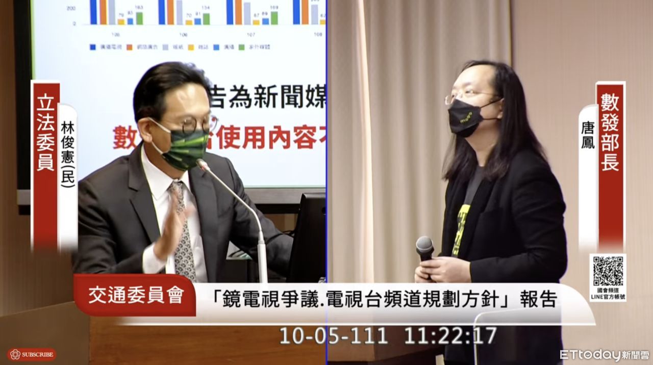 ▲立委林俊憲質詢數位發展部長唐鳳「媒體議價法」議題。(圖/翻攝立法院YT直播畫面)