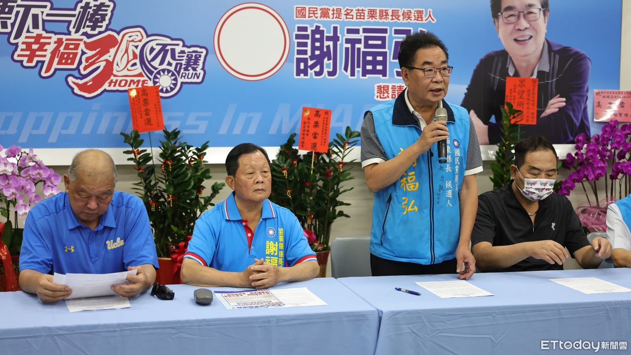 ▲▼謝福弘6日在傅學鵬、劉政鴻2位前縣長及徐志榮立委陪同下召開記者會,要求鍾東錦兌現承諾退選。(圖/記者蔡文淵翻攝)
