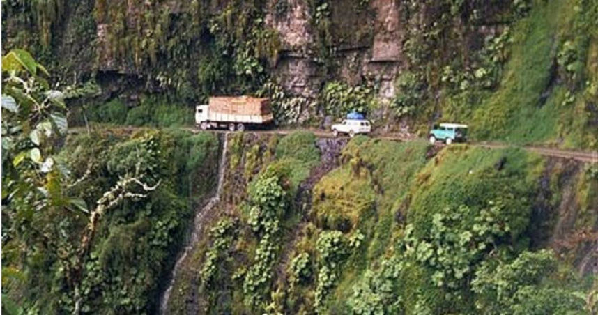 畫面中巴士駕駛小心地通行過跟車身一樣寬的道路,下一秒意外就發生了,整輛巴士就翻覆到山崖下,旁邊的人著急萬分,車上的人生死未卜。這種恐怖山路,就是遠在玻利維亞首都東北方的永加斯路。這條位於南美玻利維亞首都拉巴斯東北方的山區公路,是連接首都拉巴斯和永加斯地區的山路,這條路不但崎嶇難行,寬度更是狹窄到只有3公尺,交通意外頻傳。