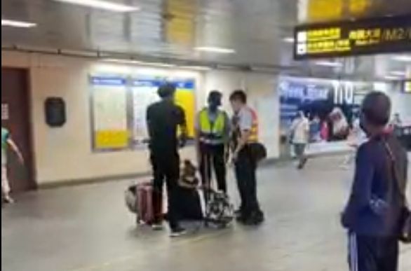 站務員獲悉後前往了解狀況,被一旁民眾錄下並貼上臉書《爆料公社》,畫面中火爆的外國籍男子中英文夾雜,不斷飆著英文國罵,當場與3名站務人員爭執,且其間還不段咆哮,同行的外國籍女子則在旁勸阻,但是外籍男仍不聽勸,甚至還出手將外籍女子推倒,1名女站務員當場攔住外國男去路,外籍男子仍牽起倒地的女子離去。