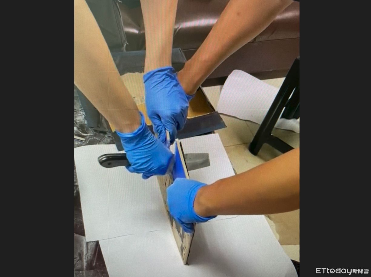 警方指出,運毒手法日新月異,竟然將襯衫禮盒拆解,並在底板加裝厚厚的瓦楞板,注入毒品k他命粉末後,在重新黏貼包裝,藉此躲避警方查緝,但警方發現,禮盒四面較薄,底板明顯超厚,所以才拿「菜刀」剖開底板查出毒品。