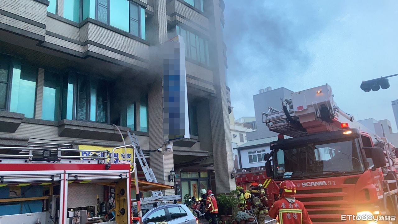 ▲台南安平一棟4樓透天厝火警,警消緊急部下水線灌救 。(圖/記者林悅翻攝)