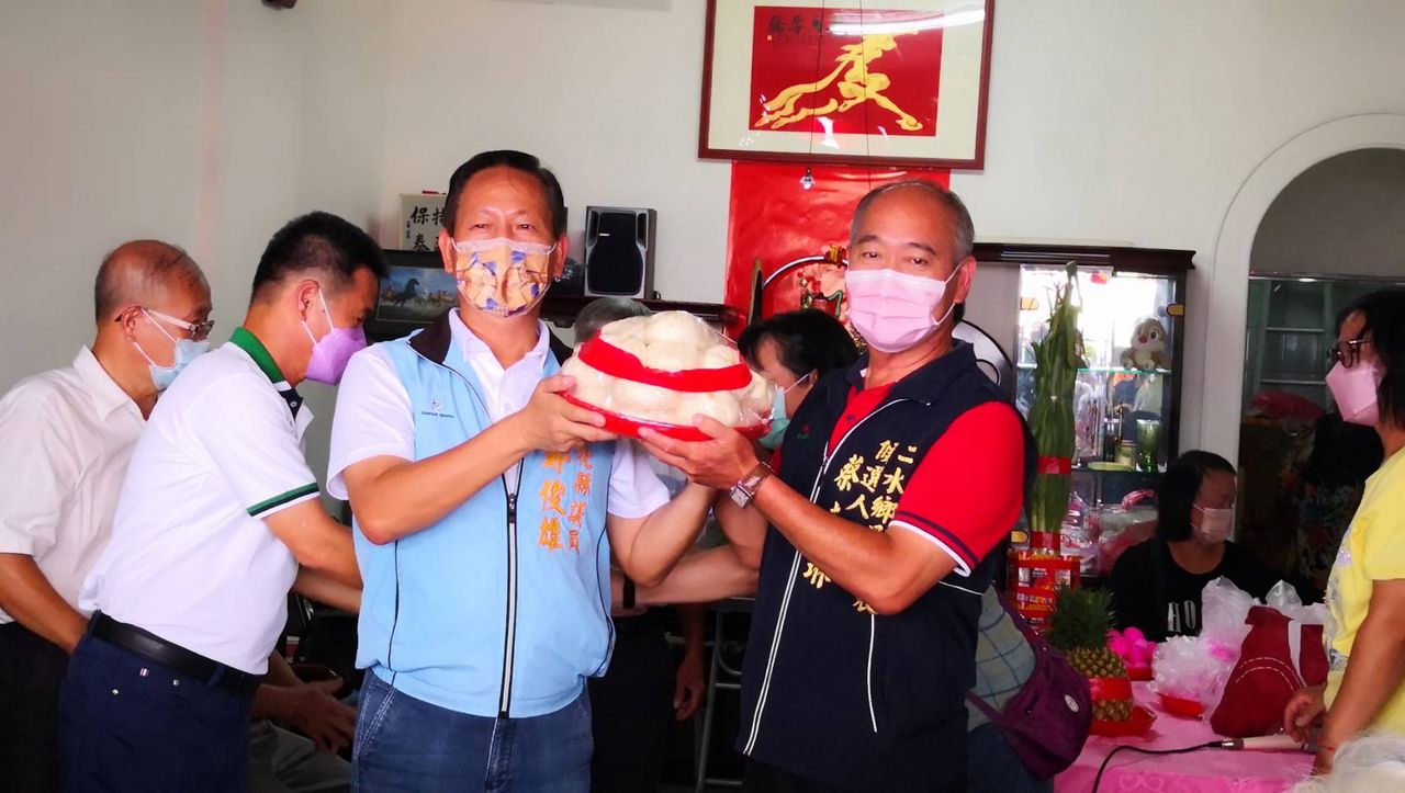 超玄的!前二水鄉農會總幹事蔡文琳,這次披戰袍角逐二水鄉民代表,原本月底才要成立競選總部,桃山廟「太子爺」為他看「好日子」,選在今天上午成立,更神奇的是,他懷了雙胞胎的媳婦也在今天生產,地方人士嘖嘖稱奇,真的是「好彩頭」,紛紛前往道賀雙喜臨門,一同沾沾喜氣。