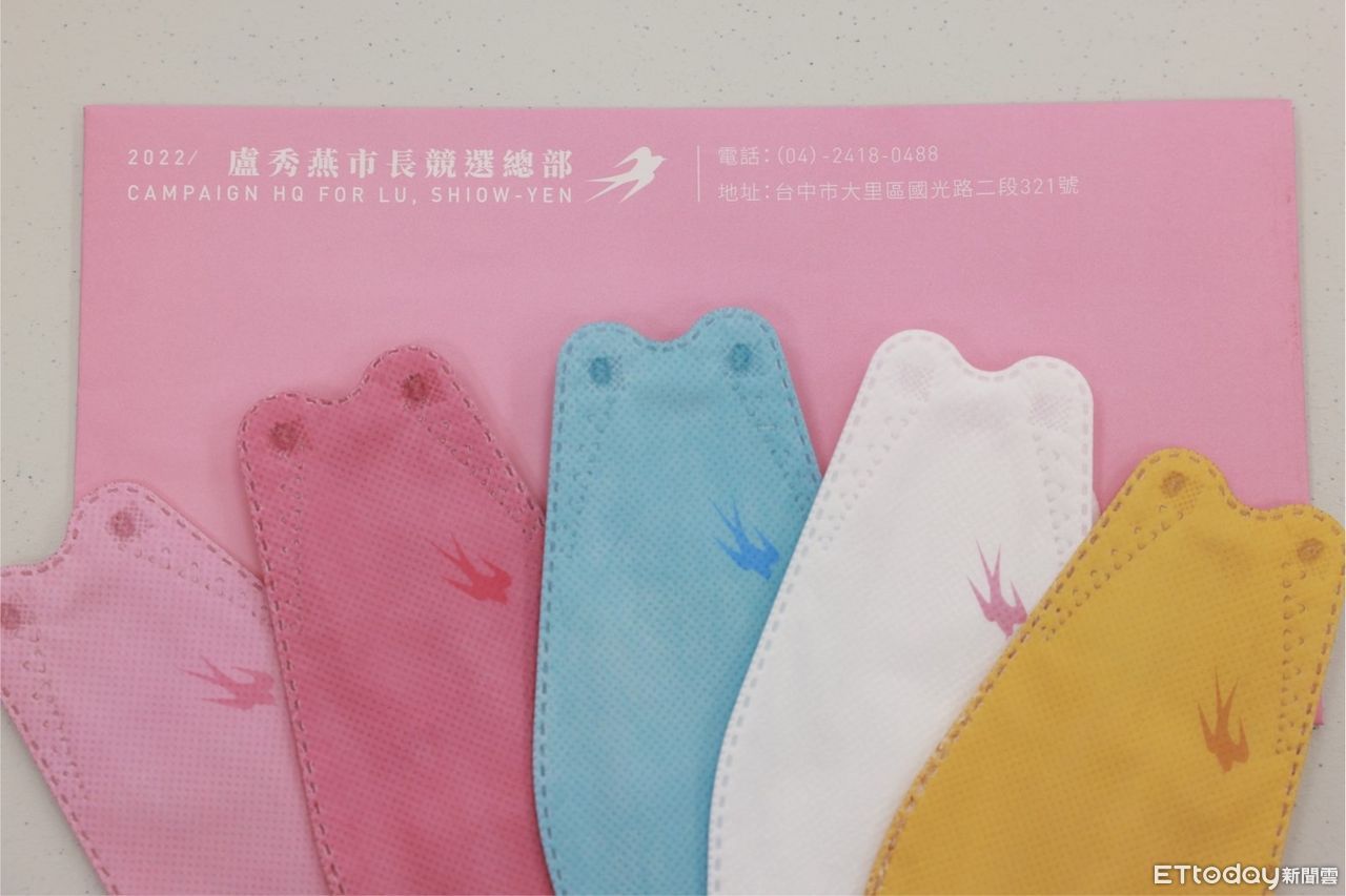 ▲捐款換「5色守護燕子」口罩,盧秀燕競總開箱選舉小物超吸睛。(圖/盧秀燕競選團隊提供,下同)