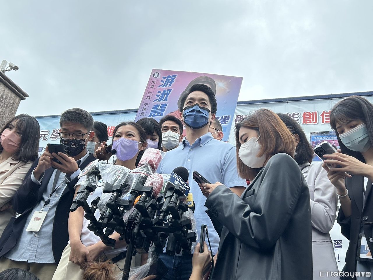▲蔣萬安陪同游淑慧到東湖市場掃街。(圖/記者袁茵攝)