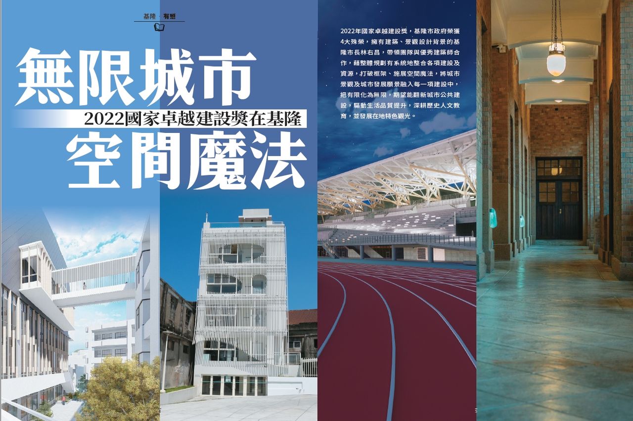 市府指出,2022年國家卓越建設獎,基隆市政府榮獲4大殊榮,擁有建築、景觀設計背景的基隆市長林右昌,帶領團隊與優秀建築師合作,打破框架、施展空間魔法,本期得獎作品的設計理念一次大公開。睽違2年在疫情之後,以「遨遊天際、向海致敬」為主題的「2022基隆海洋老鷹嘉年華」首次於國門廣場舉行,遊行隊伍為歷年來規模之最,各式各樣巨型人偶、舞藝精湛的踩街舞者,超過4萬名遊客一起封街狂歡。