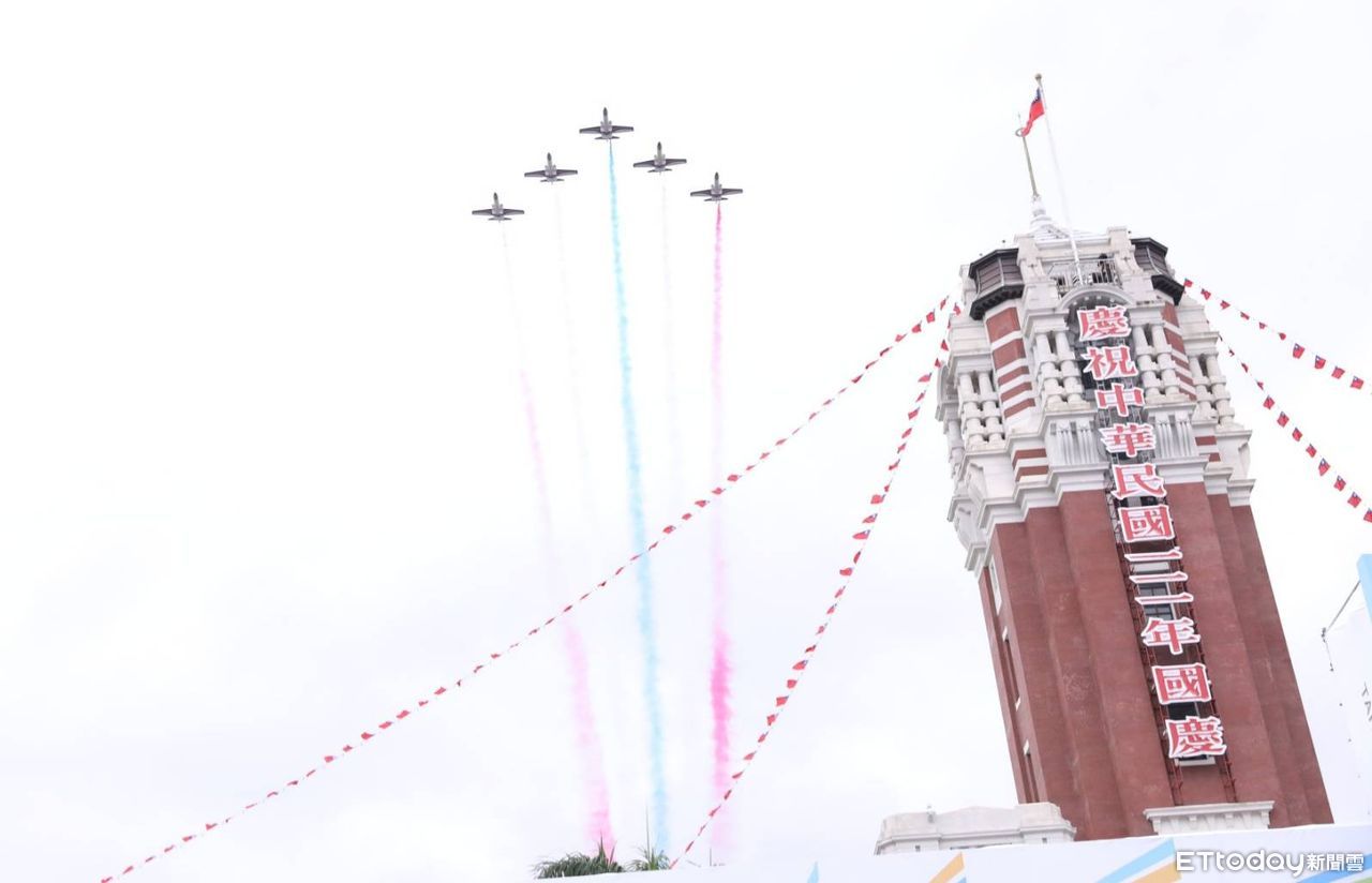 另外也安排日華議員懇談會、立法院台日交流聯誼會祝賀遊行,以及台灣街舞文化推廣協會演出,最後依照慣例,由雷虎小組衝場,飛越總統府上空,並噴出彩漆,為今年國慶大會劃下句點。
