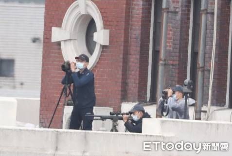 此外,《ETtoday新聞雲》記者也於總統府的頂樓,捕捉到狙擊手執行警戒勤務的畫面。