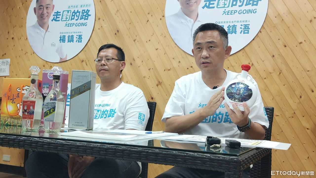 ▲金門縣長楊鎮浯開直播痛批對手陳福海抹黑金酒公司。(圖/記者林名揚翻攝)