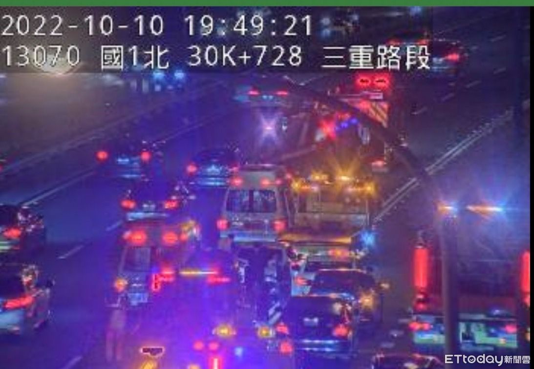國慶連假最後一天,國道1號汐五高架北上30.6K處,今天(10日)晚上7時許發生4車連環車禍,警消獲報緊急救援,有2人受傷緊急送醫,目前車流回堵中,詳細事發原因待查。