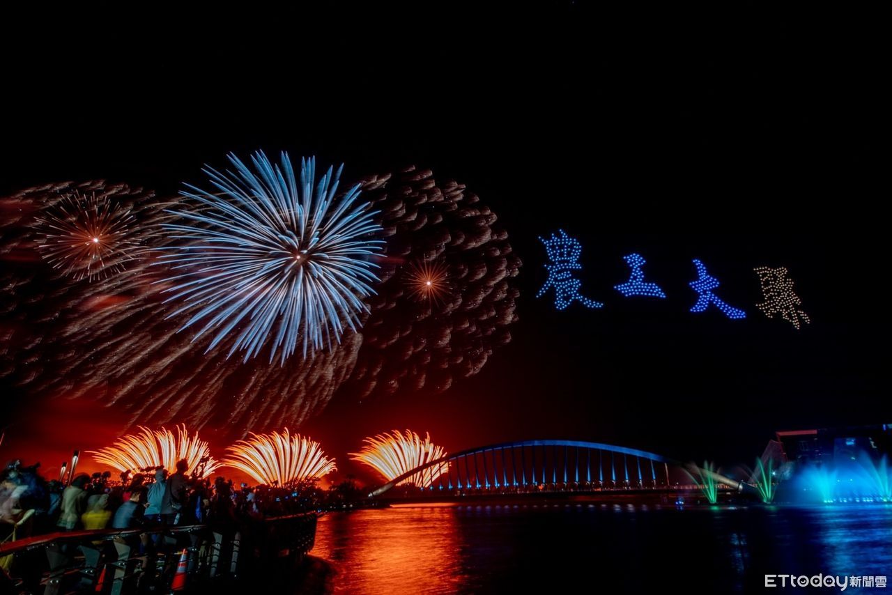 ▲2022國慶焰火搭配無人機科技閃耀嘉義。(圖/記者翁伊森翻攝)