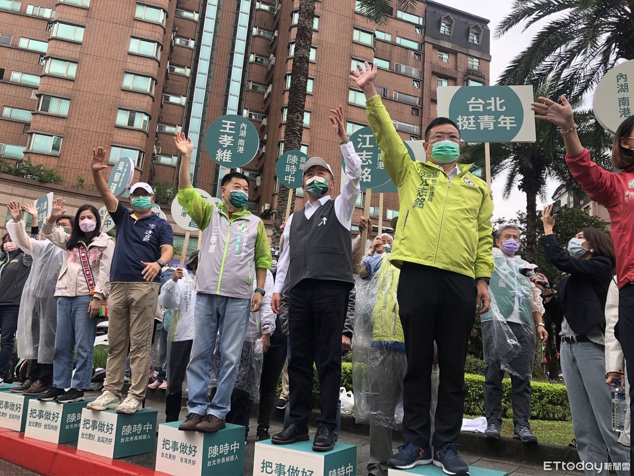 陳時中今天上午首次參與站路口行程,包括立委莊瑞雄、黨部主委張茂楠、內湖在地市議員江志銘、李建昌、市議員參選人王孝維、何孟樺、吳郁瑾等人陪同,民進黨青年部也號召青年參與,高呼「支持18歲公民權,台北挺青年」口號。