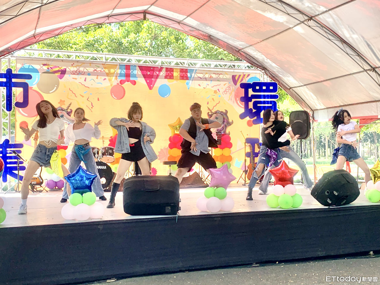 ▲環球科技大學為期一個月的校慶系列活動,在校園中除社團博覽會暨全校園遊會,學生勁歌熱舞一同歡慶。(圖/記者蔡佩旻攝)