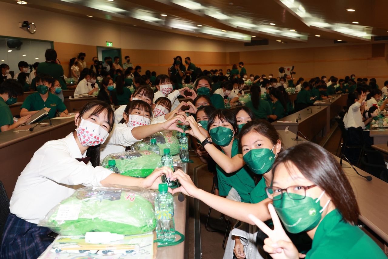 ▲「小綠綠版櫻桃小丸子」伴手禮大受日本學生歡迎。(圖/翻攝自北一女家長會樂儀旗家長後援會YouTube)