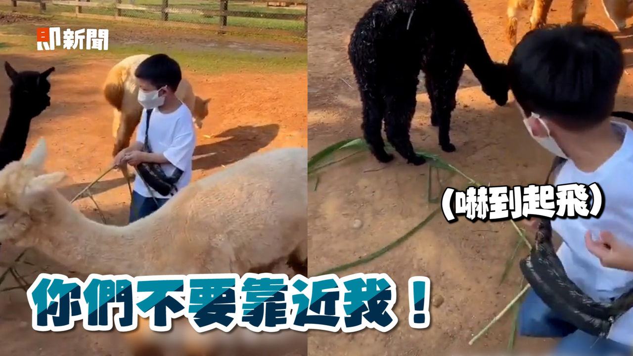 餵食草泥馬嚇到要收驚?一名媽媽日前帶兒子到農場體驗親自餵食草泥馬的活動,由於兒子手上拿著食物,因此草泥馬們就自然地被吸引過來包圍住他,沒想到兒子卻因此被嚇到彈起來,直接丟下手中的草逃到媽媽身邊避難!讓記錄下一切的媽媽笑翻表示「到底是看到什麼!嚇成這樣XD」。