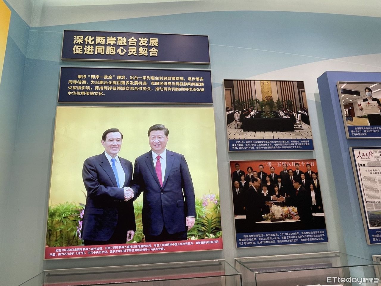 ▲展區亮點「馬習會」握手照。(圖/記者任以芳攝)