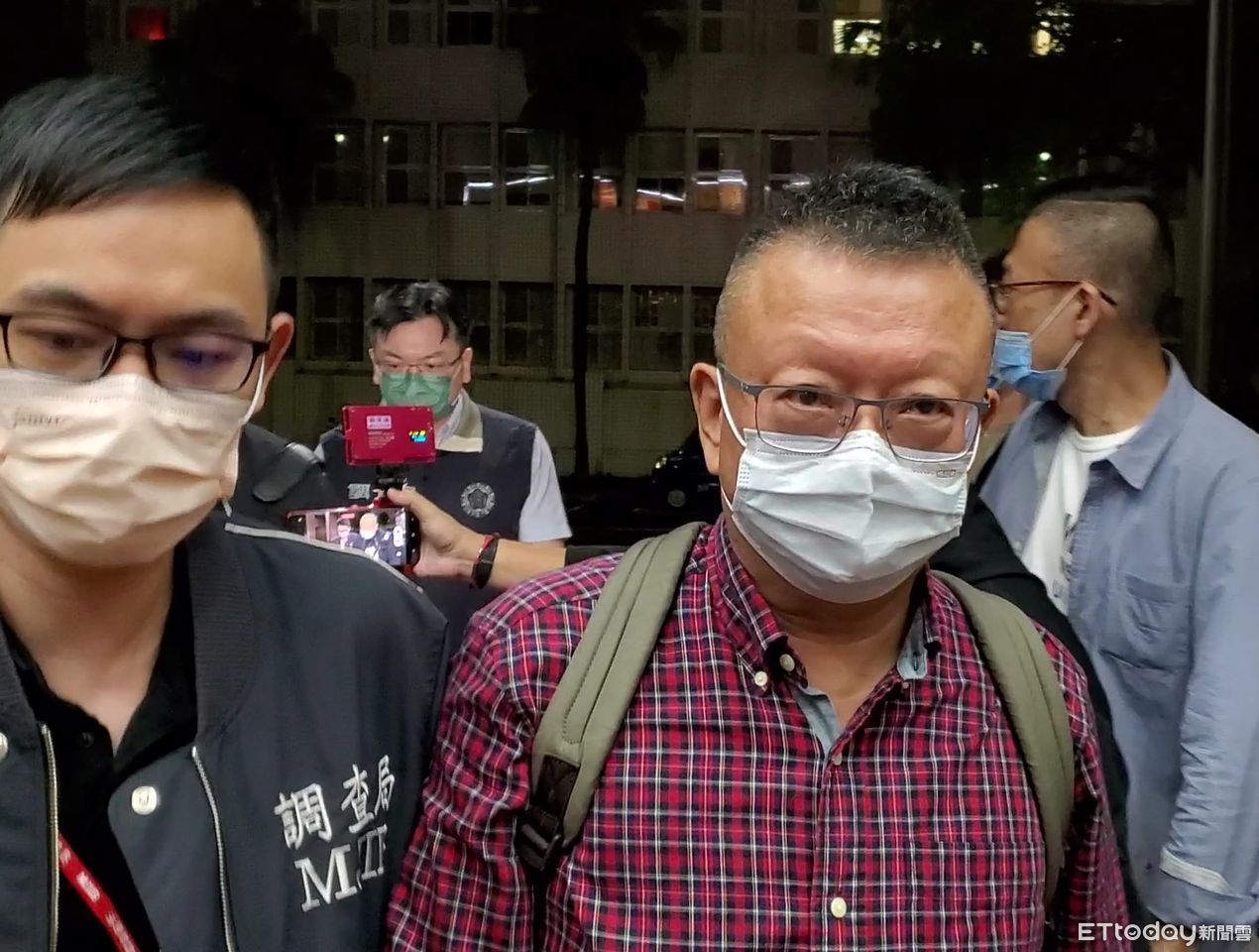▲總經理莊立平(紅衣者)被認為是案件主謀。圖為他被移送至台北地檢署複訊的畫面。(圖/記者黃哲民攝,下同。)