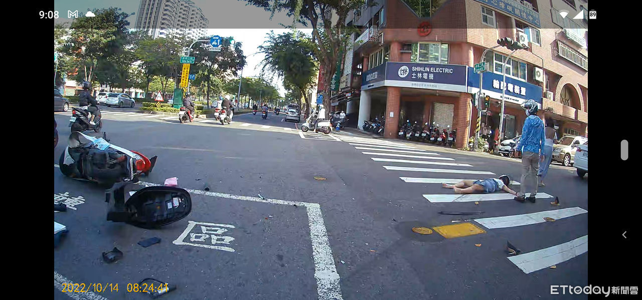 高雄中華二路熱河二街14日早上發生嚴重車禍,有網友經過拍下照片指出,機車都解體了,且地上的女騎士一動也不動,雖救護車一下子就抵達現場,但希望她沒有大礙。警方表示,該騎士目前送高醫治療中。
