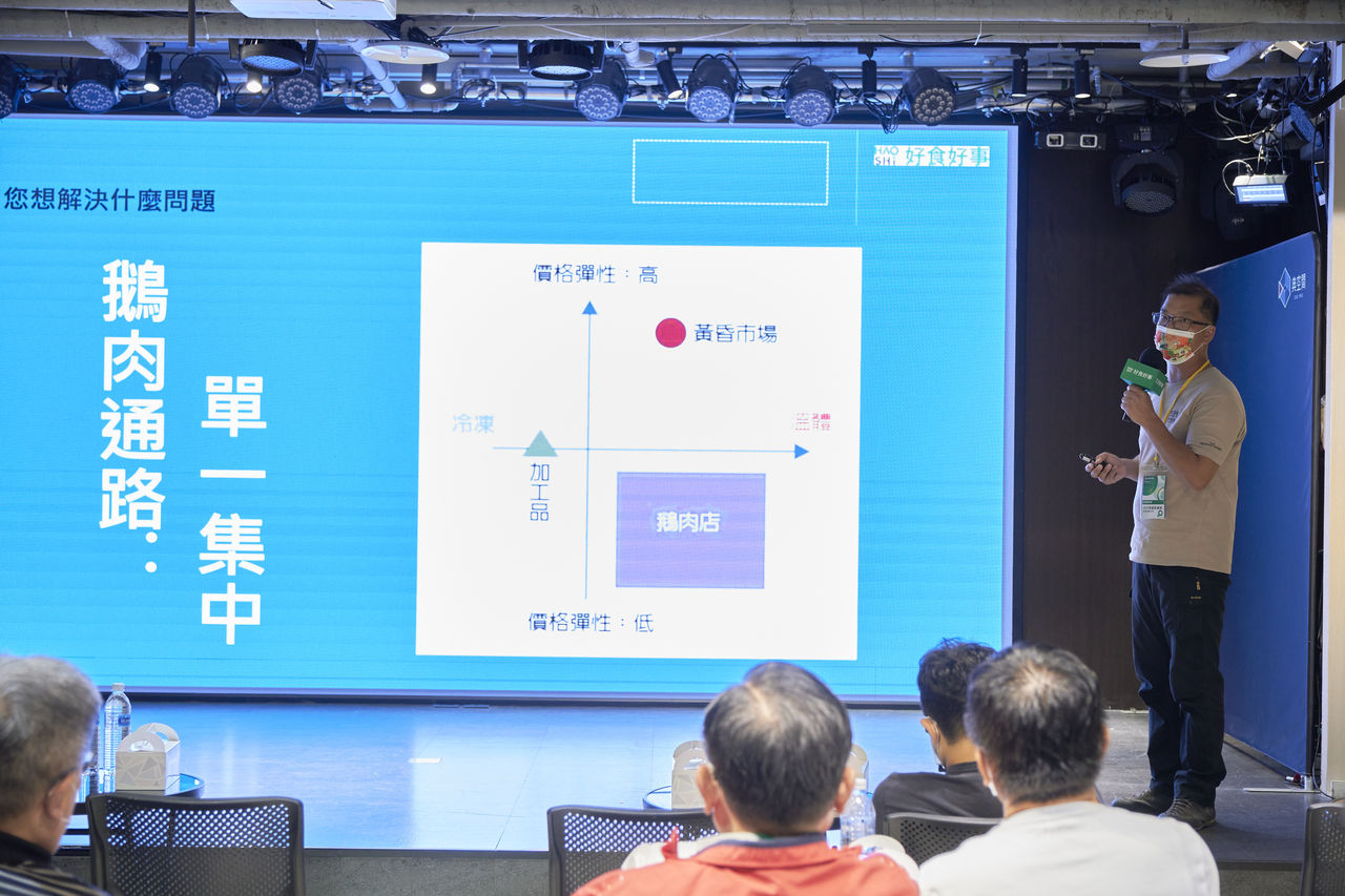▲向天歌創辦人蔡英地向好食好事加速器業師分享理念。