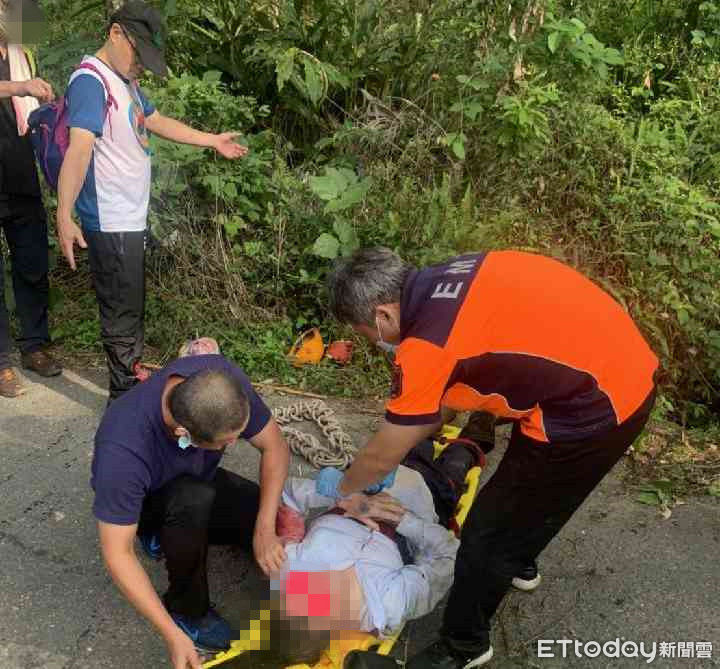 1名73歲王姓男子攀登關子嶺大凍山返程途中,行走於紫雲殿仙祖廟後方產業道路,因車道狹窄,為避讓後方來車時,不慎踩空失足,摔落約3公尺深溪谷,台南市消防局據報派員到場,架設雙節梯接近溪谷,將患者固定於長背板搶救脫困送醫。