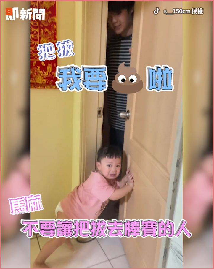 網友「蕭蕭」的兒子「石頭」是超級爸控!這天石頭爸爸要去大便,結果兒子站在廁所門口,拼命按住門,還邊哭邊擋,好像爸爸要被壞人抓走一樣,讓一旁的媽媽笑說「棒個賽而已,這麼誇張要幹嘛啦,真的是」。網友看到影片就留言「好黏爸爸太可愛啦」、「把拔以後棒賽記得帶上人家XD」。