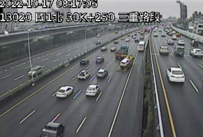 高公局表示,今天08:03國道1號北向30.2K、三重路段,發生一輛轎車、一輛大客車追撞佔用外線車道事故,事故處理中,後方回堵1公里,請用路人小心駕駛。目前該路段時速「紫爆」,僅剩19公里。