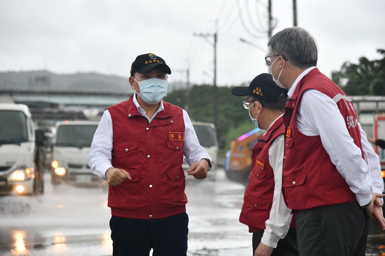 ▲侯友宜17日早上勘查三重高灘地災情。(圖/新北市府提供)