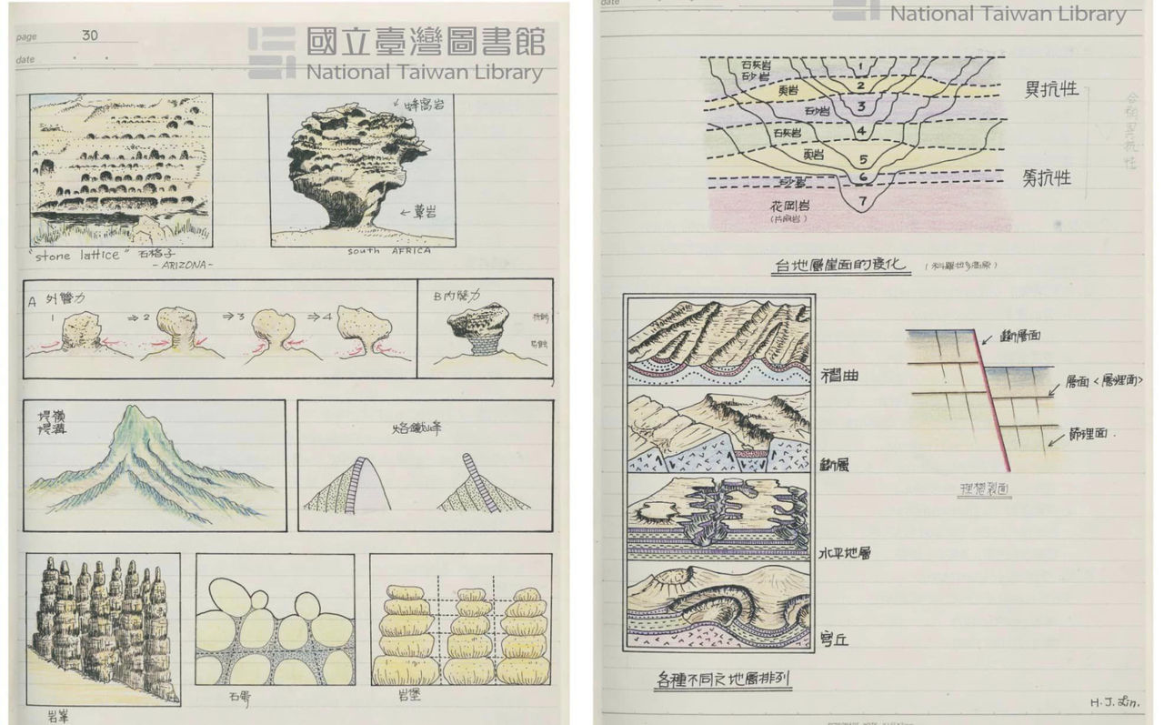 上課手抄筆記,竟被圖書館珍藏!國立台灣師範大學地理系退休副教授林惠娟,40多年前就讀台師大地理系二年級修習地形學時,上課的手抄筆記,因筆跡工整清晰,各種地形圖表繪製精美,媲美教科書,國立台灣圖書館日前把這本筆記掃描後數位典藏並公開閱覽,有網友看了直呼「教科書等級」、「簡直是地理界的九陰真經」。