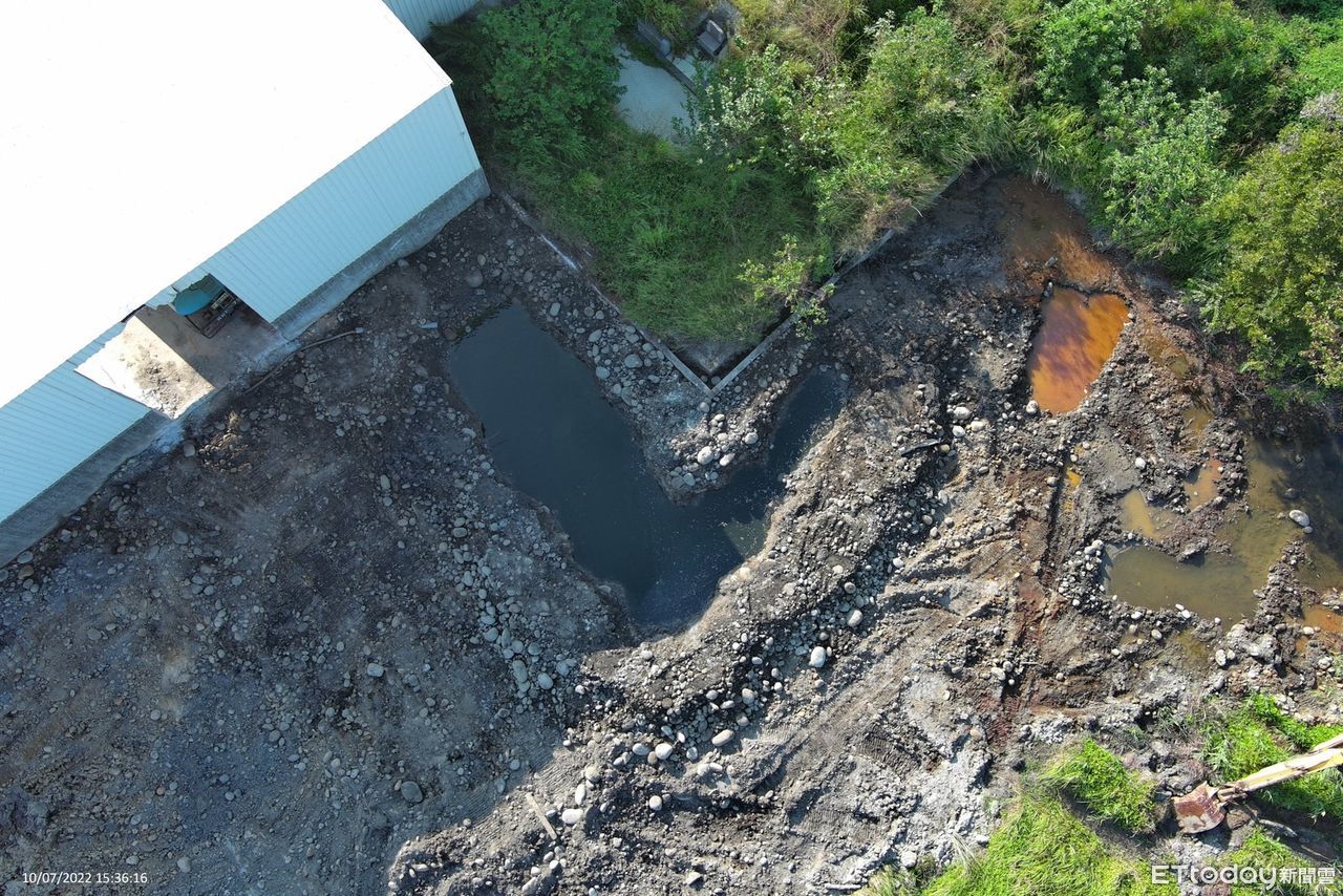 ▲「從台北偷運到台中」開挖2米深天坑倒強酸 不肖業者遭羈押禁見。(圖/讀者提供,下圖)