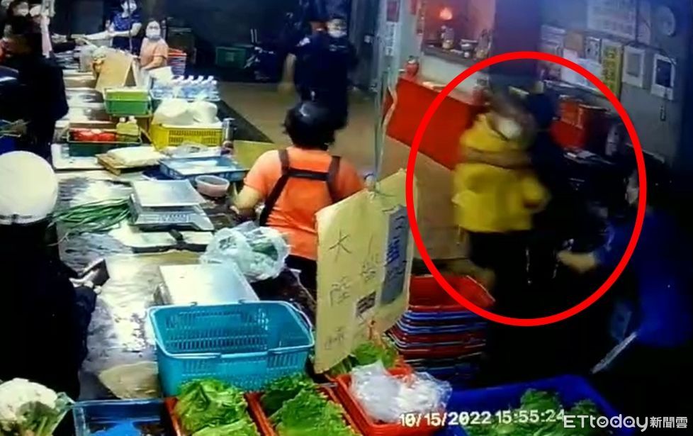 員警跑在後頭大喊「幫忙抓住他!」但市場裡的攤販都嚇了一跳,只來得及觀望,就在阮男快成功逃離之際,突然一隻強壯手臂將阮男撂倒,協助警方把人壓制,勇氣可嘉。