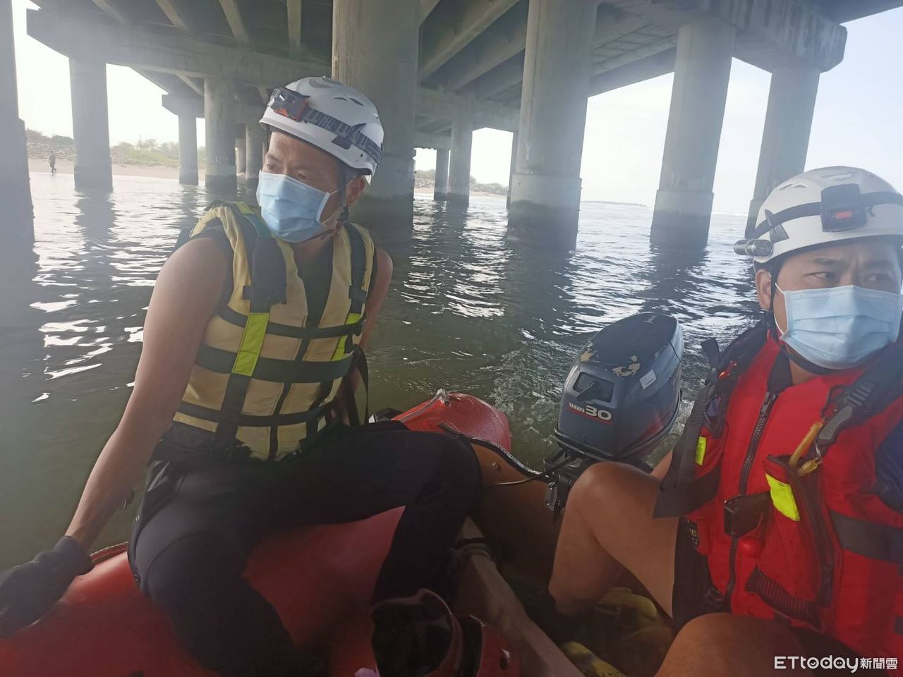 ▲台南市南區二仁溪橋北端,19日上午9時19分許驚傳有人落海,台南市消防局出動救生艇搜救,幸好平安在附近公園找到人。(圖/民眾提供,下同)