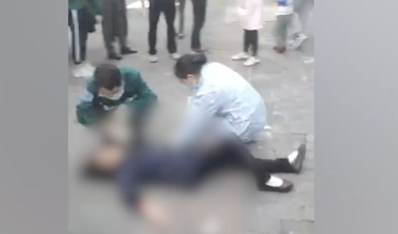 ▲老婦被砸傷,倒地不起。(圖/翻攝微博)