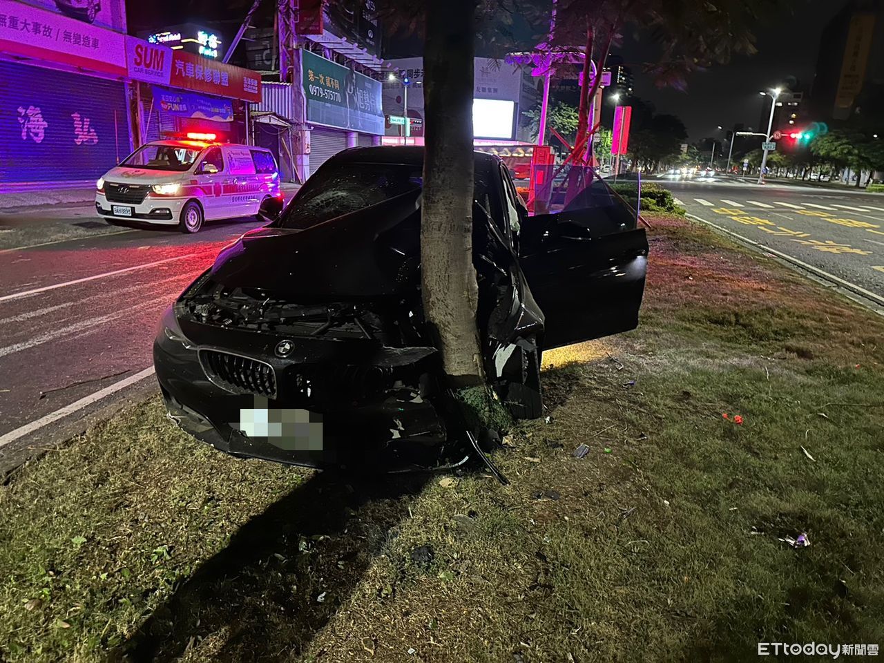 從照片中可以看到,這輛黑BMW直接開上了安全島,且車頭半毀,警方表示,包男頭部、四肢輕微擦挫傷,意識清楚,當時還能自己下車行走,並向警方稱「自己太累了,開車打瞌睡」,就不慎撞上安全島,所幸駕駛由救護人員送醫治療後無礙。