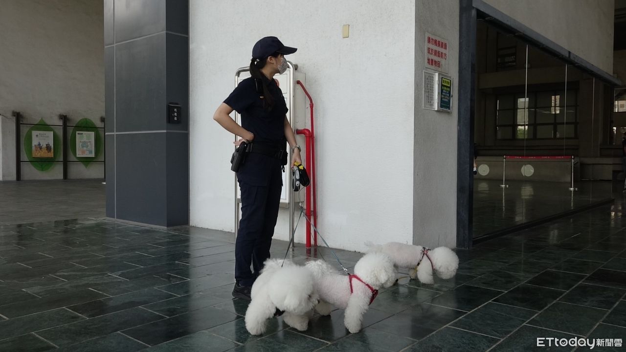 ▲▼朱挺玗的3隻狗狗不能進場陪同抽籤,場外女警秒變狗保母照顧。(圖/記者吳奕靖攝)