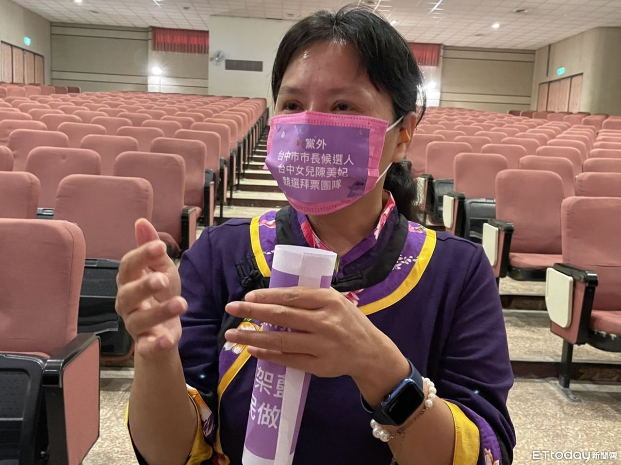 2022九合一大選11月26日投票,台中市長選舉總共有3人參選,其中1號由無黨籍參選人陳美妃抽中,但抽籤當下陳美妃未現身,反而抽籤結束後才姍姍來遲,詢問原因竟是「搭小黃塞車才遲到!」讓在場媒體傻眼,對於自己抽到一號,她喊出「一號美妃,一飛沖天」。另外國民黨盧秀燕抽中3號、民進黨蔡其昌抽中2號。