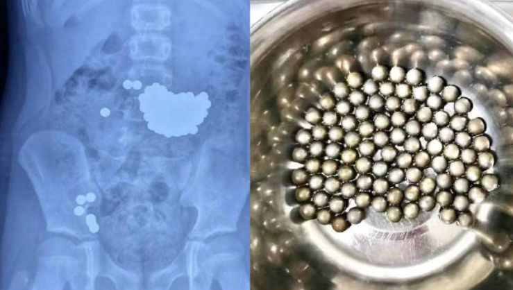▲男童吞下103顆比黃豆大的鋼珠。(圖/翻攝自紫牛新聞)