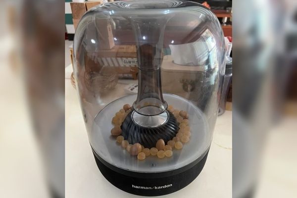 依據照片畫面,這款要價不斐的藍芽喇叭中間有個空心設計,沒想到男子的外甥竟將糖果從中空處丟入,全部堆在喇叭旁,看到喇叭被這樣對待,想要不崩潰也難。