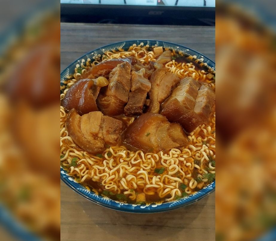 ▲原PO的宵夜是肉骨茶麵加豬腳。(圖/翻攝自Facebook/爆怨公社)
