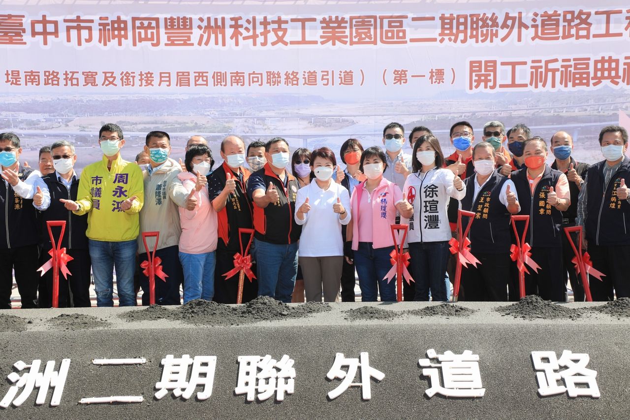 台中市政府配合神岡豐洲科技工業園區二期開發,積極辦理聯外道路(堤南路)拓寬工程,提升園區招商意願,今(24)日「堤南路拓寬及銜接月眉西側南向聯絡道引道(第一標)」舉行開工典禮。「預計明年中完工!」市長盧秀燕出席表示,堤南路現況寬8公尺,將拓寬至20公尺,後續市府會再推進第二標,未來將改善區域交通的便利,提升豐洲科技工業園區二期整體發展品質。